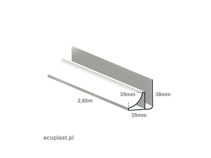 Narożnik wewnętrzny 90° WS, biały, PVC, długość 2,65 m. Profil wykończeniowy do łączenia paneli ściennych/sufitowych pod kątem prostym; maskuje krawędzie i dylatacje, wodoodporny, łatwy montaż na klej.