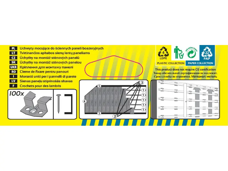 Blaszki – klamry montażowe i gwoździki w opakowaniu 100szt. do paneli PVC lamelowych to niezbędny element do profesjonalnego montażu paneli ściennych i sufitowych. Dostępne w sklepie Ecoplast.pl, blaszki klamry montażowe do paneli PVC umożliwiają łatwe i trwałe mocowanie paneli, zapewniając stabilność konstrukcji. Opakowanie 100 sztuk wystarcza na przymocowanie około 5-7,5 m² paneli, co czyni je ekonomicznym wyborem do większych powierzchni. W Ecoplast.pl znajdziesz wszystko do wykończenia – sprawdź listwy i akcesoria.