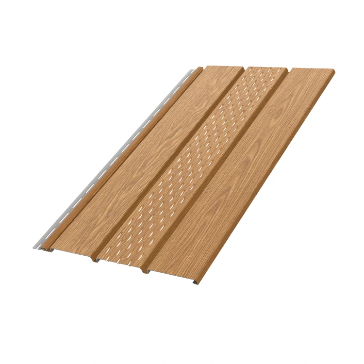 BRYZA dąb turner - Podsufitka WENTYLACYJNA (trzydeskowa) / 30,5cm x 3m to doskonałe rozwiązanie dla osób, które pragną nadać swojemu domowi elegancki i naturalny wygląd. Ten ciepły, klasyczny odcień dębu idealnie komponuje się z różnorodnymi elewacjami, w tym zarówno z nowoczesnymi, jak i tradycyjnymi projektami architektonicznymi. Kolor Dąb Turner doskonale pasuje do budynków o stonowanej kolorystyce, takich jak beże, brązy czy odcienie szarości, dodając im przytulności i stylu. Jest również idealnym wyborem dla domów o bardziej rustykalnym charakterze, gdzie naturalne motywy i materiały odgrywają kluczową rolę. Podsufitka w kolorze Dąb Turner może być także stosowana jako kontrastowy element dla jaśniejszych fasad, nadając całości wyrafinowanego i harmonijnego wyglądu. Dzięki swojej uniwersalności, podsufitki te doskonale współgrają również z różnymi rodzajami stolarki okienno-drzwiowej oraz systemami rynnowymi, tworząc spójny i estetyczny wystrój zewnętrzny każdego budynku.