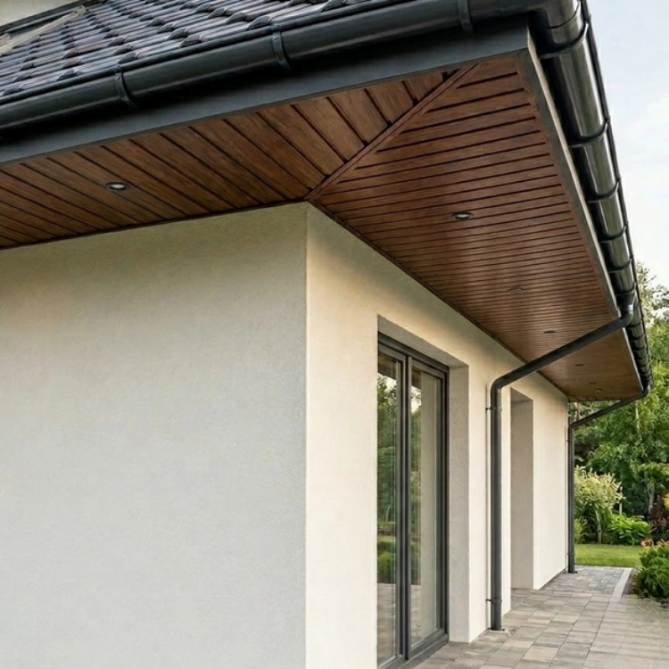 Podsufitka pełna Bryza w kolorze orzech to praktyczne i estetyczne rozwiązanie do wykończenia okapu dachu. Panel trzydeskowy o szerokości 305 mm i długości 3 m tworzy równą, spójną powierzchnię, która porządkuje przestrzeń pod okapem i podkreśla linię dachu. Naturalna tonacja orzecha harmonizuje z popularnymi okleinami stolarki okiennej i bram garażowych, dzięki czemu łatwo uzyskać jednolity efekt wizualny na elewacji. Wykonanie z wysokiej jakości PVC sprawia, że podsufitka nie wymaga malowania ani impregnacji – zachowuje kolor i estetykę przez długie lata użytkowania. Pełny (nieperforowany) panel sprawdzi się w strefach, gdzie nie planuje się dodatkowej wentylacji przez podsufitkę, a liczy się gładka, jednolita płaszczyzna i minimalistyczny wygląd.