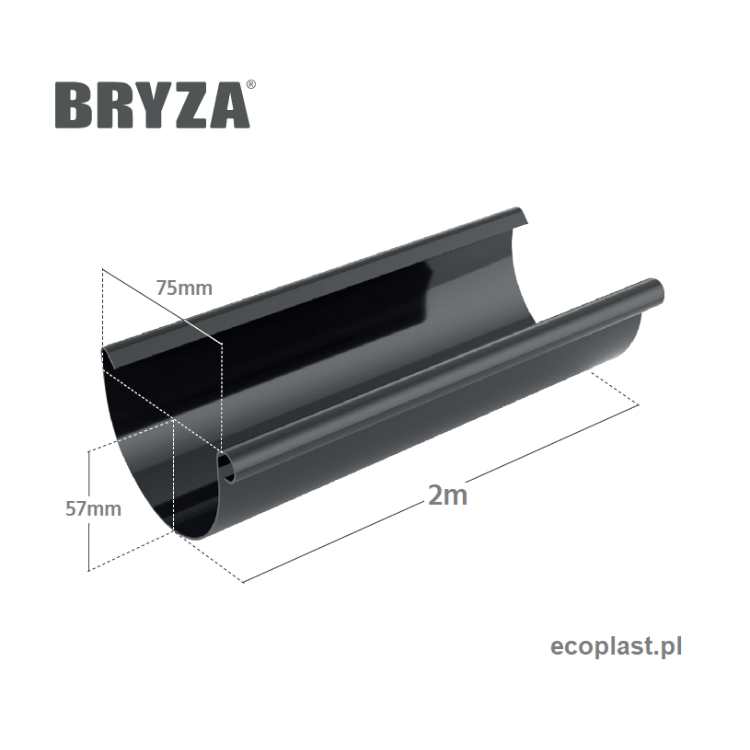 Mimo swoich kompaktowych wymiarów, rynna Bryza brąz 75 mm (połączona z rurą spustową 63 mm) charakteryzuje się znakomitą przepustowością. Głęboki profil gwarantuje swobodny przepływ wody nawet w trakcie ulewnych deszczy. W zależności od umiejscowienia rury spustowej, jeden pion tego systemu potrafi skutecznie odwodnić dach o powierzchni do 48 m² (gdy odpływ zlokalizowany jest na skraju okapu) oraz do 95 m² (w przypadku umiejscowienia rury spustowej na środku okapu).