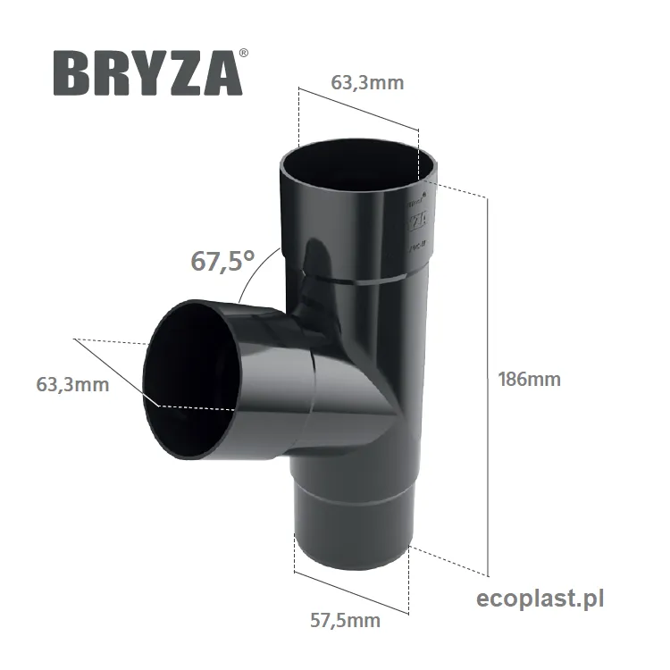 Trójnik rury spustowej 63/63/63 mm o kącie 67,5° to kluczowy element systemu Bryza, umożliwiający sprawne połączenie dwóch pionów spustowych w jeden. Wykonany z wysokiej jakości tworzywa PVC w kolorze brązowym, zapewnia płynny przepływ wody deszczowej oraz wysoką estetykę wykończenia instalacji rynnowej.