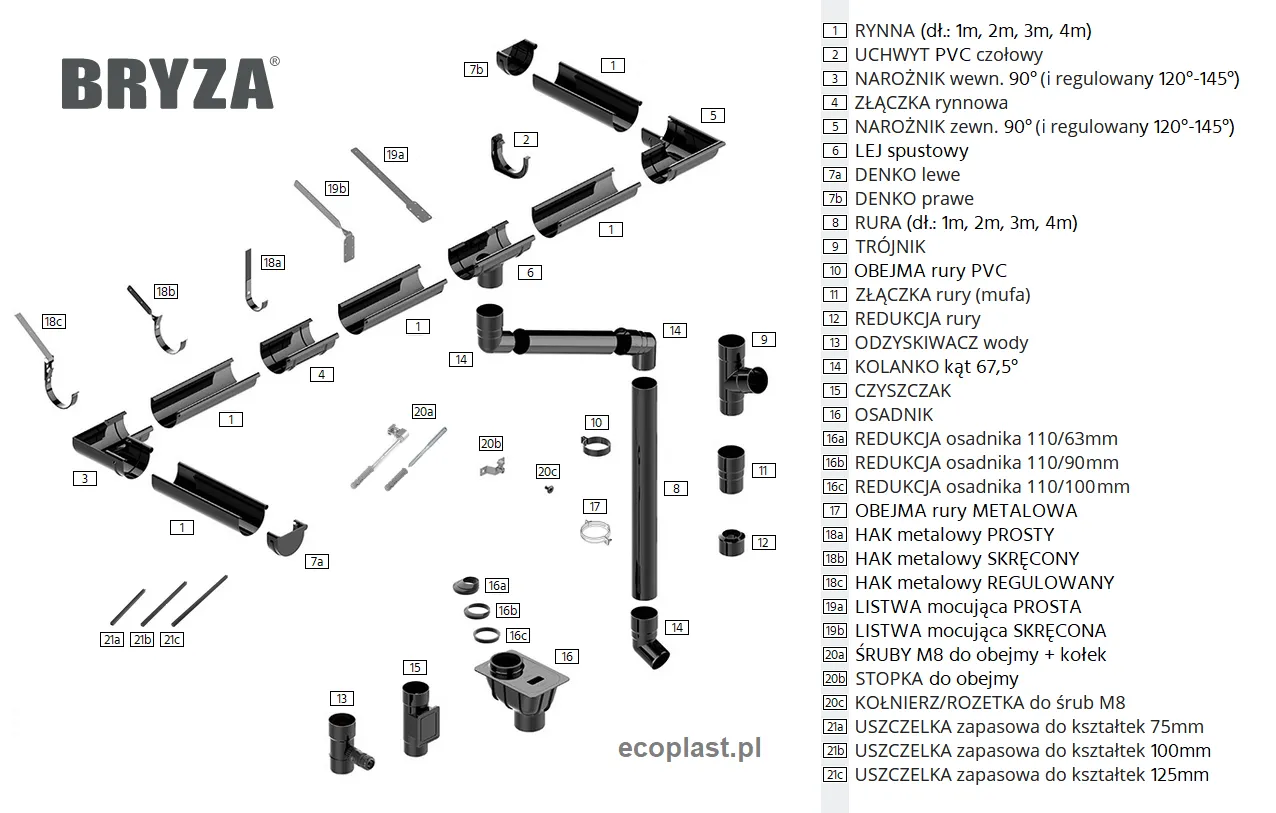 Czy czarny kolor dopasuje się do akcesoriów? Tak – czarny jest standardową barwą w ofercie BRYZA, łatwo dopasujesz rynny, rury i łączniki w tym samym kolorze.