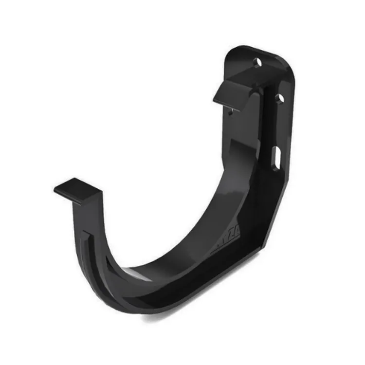 Standardowy uchwyt rynnowy z PVC w kolorze czarnym (RAL 9005), dedykowany do systemu rynnowego BRYZA 125. Model doczołowy, przeznaczony do szybkiego i prostego montażu bezpośrednio do deski czołowej.
