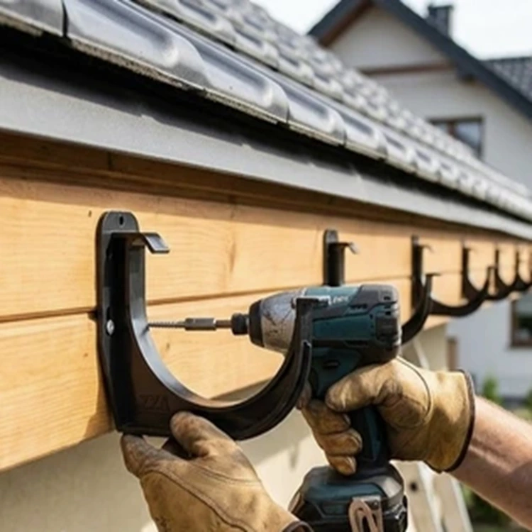 Przekrój rynny 125 mm to absolutny lider rynkowy, dedykowany do sprawnego odwadniania domów jednorodzinnych, mniejszych budynków wielorodzinnych i obiektów komercyjnych. Solidne haki doczołowe z PVC stanowią na takich obiektach twardy fundament wydajności układu. Przejmują na siebie potężny ciężar spływającej wody z dużych połaci dachu, zapobiegając obrywaniu się systemu i gwarantując bezproblemowy przepływ w stronę rur spustowych.