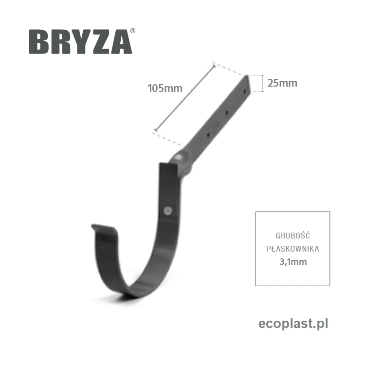 Zagwarantuj swojemu orynnowaniu pancerną stabilność dzięki metalowemu uchwytowi skręconemu dedykowanemu do systemu Bryza 75 mm. Ten grafitowy hak został precyzyjnie zaprojektowany do bocznego montażu na krokwiach, co idealnie sprawdza się w przypadku otwartej więźby i braku deski czołowej. Wykonany z grubej, ocynkowanej i malowanej stali, bez problemu oprze się największym obciążeniom śniegowym, zapewniając bezpieczne odprowadzanie wody z każdego garażu czy wiaty.