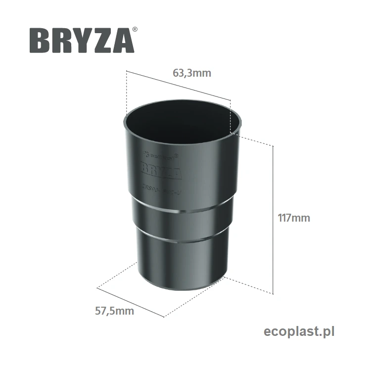 Złączka rury (potocznie nazywana mufą) to niewielki, ale niezwykle ważny element. Służy do łączenia dwóch odcinków rury spustowej 63 mm w pionie, a także do prawidłowego połączenia wylotu leja spustowego z rurą zjazdową. Wykonana z trwałego tworzywa w głębokim, grafitowym odcieniu, zapewnia płynny, bezkolizyjny spływ wody deszczowej w dół, zachowując przy tym pełną spójność kolorystyczną z resztą instalacji na elewacji.