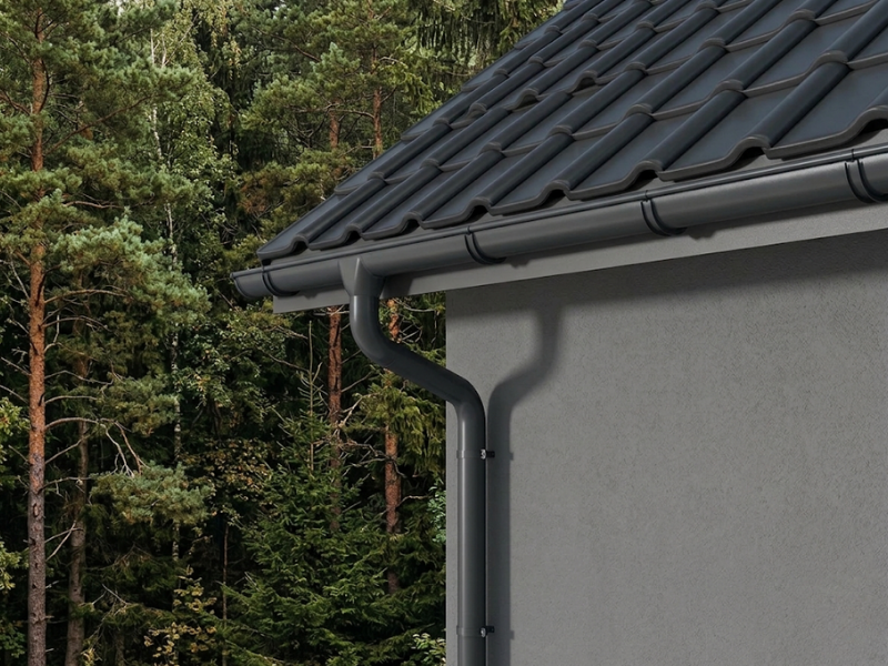 Lej spustowy 125mm z wyjściem na rurę spustową 100mm w kolorze grafitowym RAL 7021 do systemy rynnowego Bryza STAL