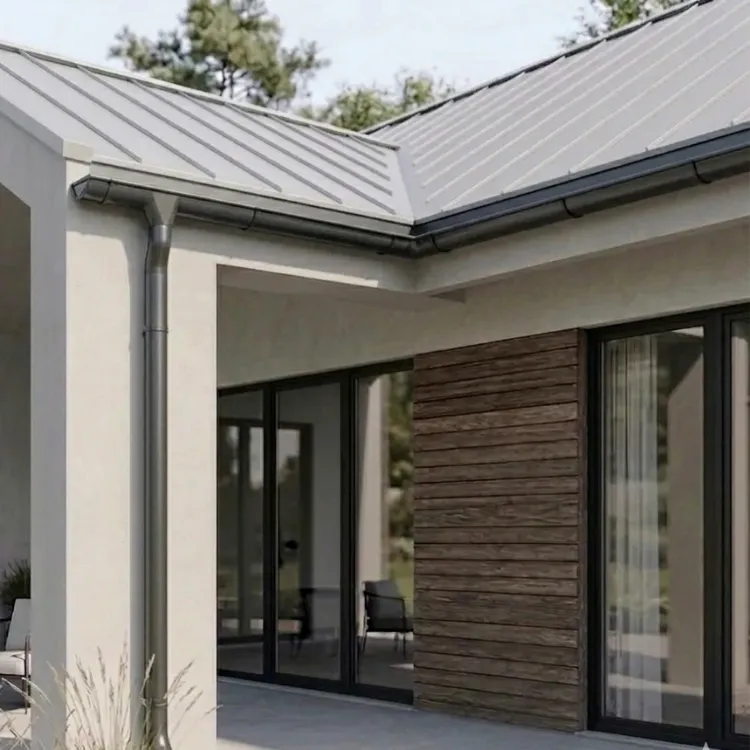 Przyspiesz prace montażowe i drastycznie zredukuj ilość złączek na elewacji. Rynna Bryza Stal o średnicy 125 mm w formacie czterometrowym to idealne rozwiązanie na długie, proste okapy. Głęboki grafitowy odcień rewelacyjnie wpisuje się w nowoczesne trendy architektoniczne. System zabezpieczony jest innowacyjną powłoką poliuretanową o grubości 50 µm, która tworzy twardą tarczę przeciw zarysowaniom i blaknięciu. Głęboki profil to z kolei absolutna pewność, że woda nie przeleje się przez krawędź nawet podczas najcięższych ulew.