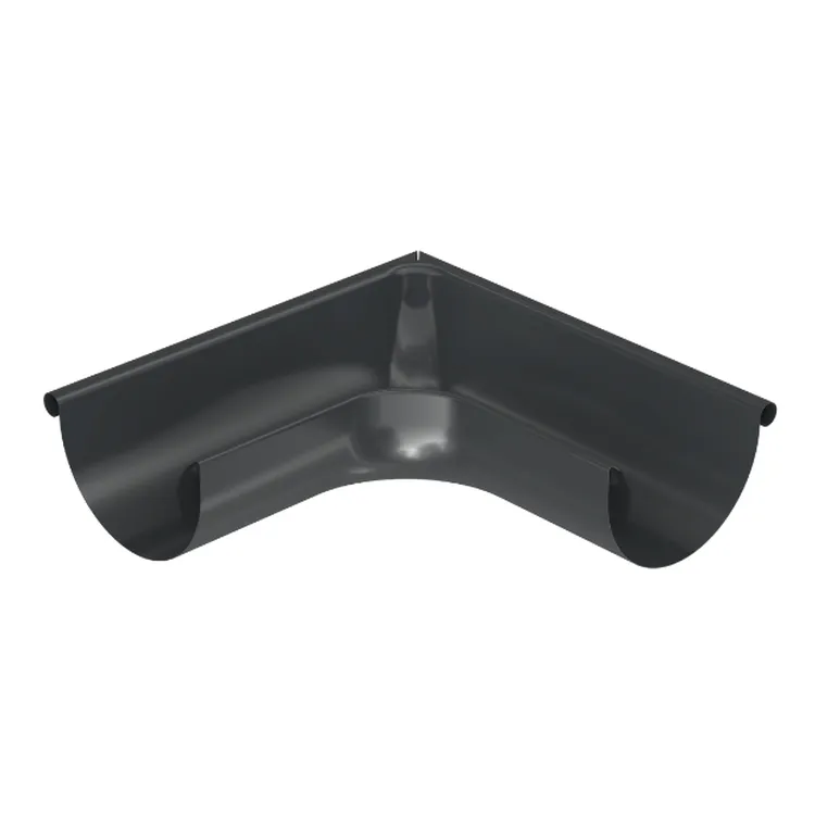Grafitowy narożnik zewnętrzny (kąt 90) Bryza Stal o średnicy 150 mm to niezastąpiony element do łączenia potężnych rynien na rogach budynków. Wyróżnia się specjalnie wydłużonymi ramionami, które ułatwiają poziomowanie i bezpieczny montaż złączek. Potężny stalowy rdzeń zabezpieczony innowacyjną warstwą poliuretanu zapewnia ekstremalną nośność oraz elegancki wygląd elewacji na długie dziesięciolecia.