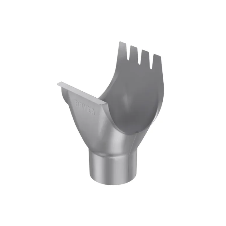 Nawet najszersza i najgłębsza rynna nie spełni swojego zadania, jeśli woda nie zostanie sprawnie przetransportowana w dół. Lej spustowy, znany w branży dekarskiej jako sztucer, to krytyczny punkt całego układu odprowadzającego deszczówkę. Prezentowany model Bryza Stal w rozmiarze 150/100 mm został zaprojektowany z myślą o maksymalnej wydajności. Idealnie wyprofilowany kielich odbiera potężne masy wody z rynny 150 mm i płynnie, bez zawirowań, kieruje je do szerokiej rury spustowej 100 mm. To gwarancja, że podczas ekstremalnych, letnich nawałnic woda nie przeleje się przez krawędź okapu na Twoją elewację.