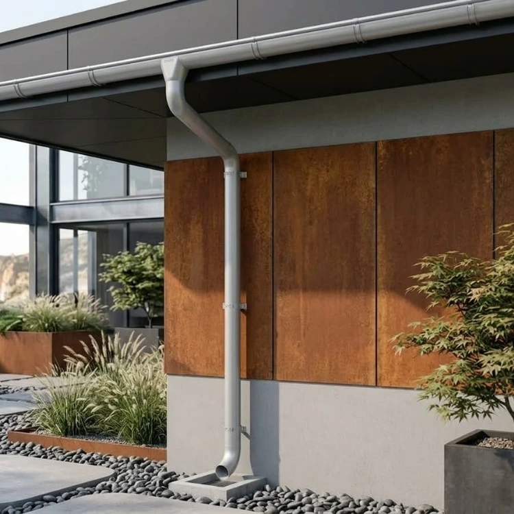 Trzymetrowy ciąg rury z powodzeniem doprowadzi wodę na sam dół, ale warto ją odpowiednio zagospodarować. Na końcu rury warto zamontować odzyskiwacz wody z funkcją czyszczaka. Ten mały element wyłapuje zanieczyszczenia i pozwala przekierować darmową deszczówkę wprost do ogrodowego zbiornika. Jeśli wolisz odprowadzić wodę do instalacji podziemnej, rura stalowa Bryza 90 mm perfekcyjnie pasuje do wpustowego osadnika rynnowego z systemu Bryza PVC.