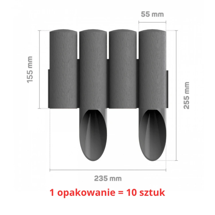 Praktyczna palisada ogrodowa CELLFAST Standard 4 w kolorze grafitowym o łącznej długości 2,3 metra. Posiada estetyczną, drewnopodobną fakturę i jest idealna do wytyczania granic rabat, ścieżek oraz trawników.
