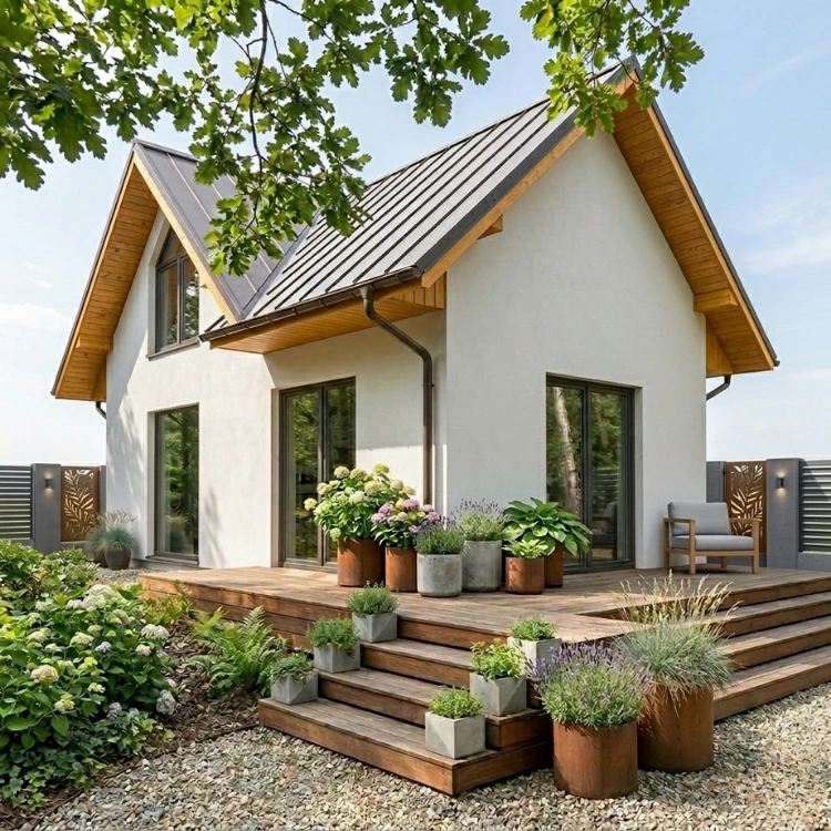 Szlachetny odcień dębu. Narożnik Dąb Winchester wyróżnia się wyrazistym usłojeniem i ciepłą barwą, dodając elewacji luksusowego charakteru.