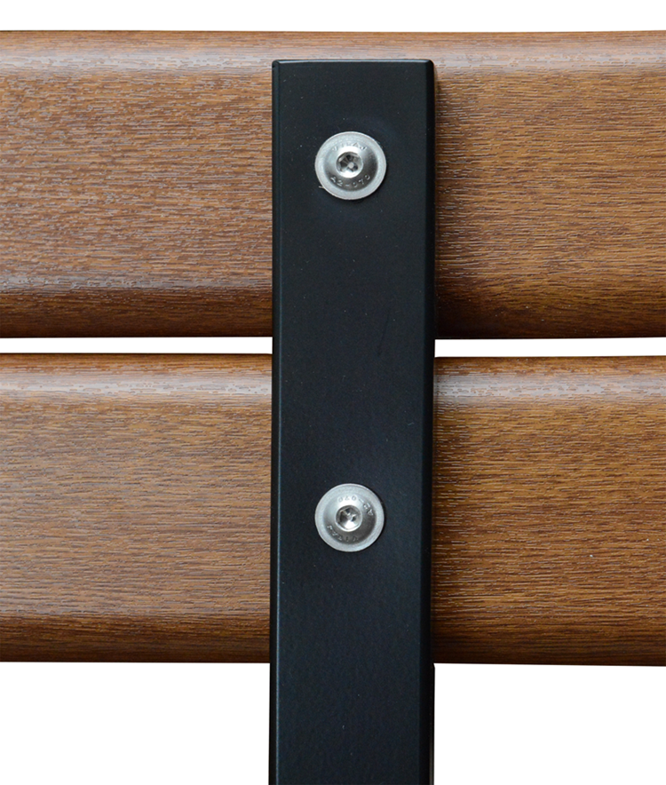 Nogi stalowe w nowoczesnym profilu są połączone poprzeczką, która usztywnia i wzmacnia całą konstrukcję. Profile stalowe cięte na ploterze laserowym z bardzo dużą dokładnością co przekłada się na wysoką estetykę. Stelaż jest pomalowany farbą proszkową i zabezpieczony podkładem cynkowym. Nóżki mają nawiercone otwory umożliwiające ich przymocowanie do podłoża.