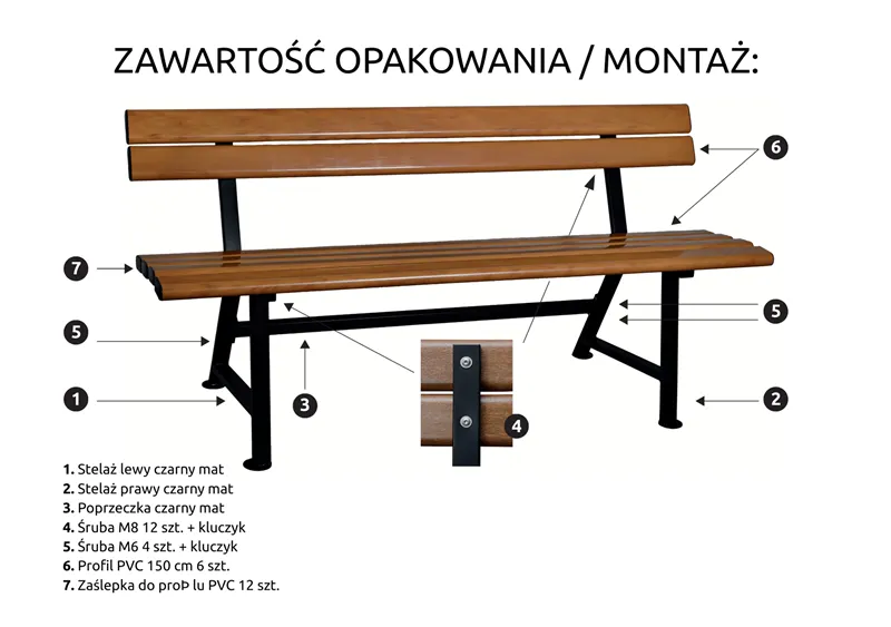 Mocowanie deski ławkowej, poprzeczki i nóżki: