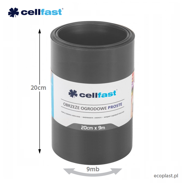 Nowoczesna bariera dla korzeni. Obrzeże ogrodowe faliste Cellfast o wysokości 20 cm i długości 9 metrów w kolorze grafitowym.