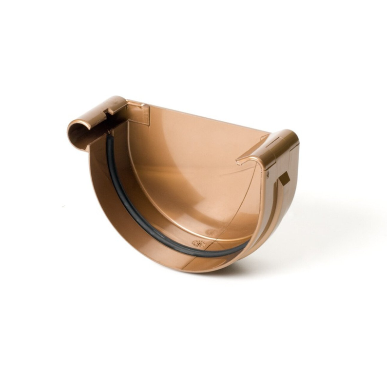 Standardowy uchwyt rynnowy z PVC w eleganckim kolorze miedzianym, dedykowany do systemu rynnowego BRYZA 125. Model doczołowy do szybkiego i prostego montażu rynny bezpośrednio do deski czołowej.