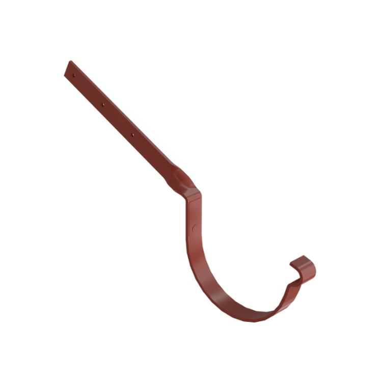 Fundament stalowego systemu rynnowego. Uchwyt rynnowy doczołowy do systemu Bryza Stal 125 mm w kolorze ceglastym to hak o najwyższej wytrzymałości.