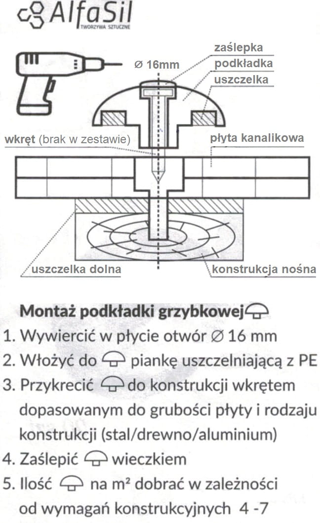 5. ilość podkładek na m² dobrać w zależności od wymagań konstrukcyjnych 4-7