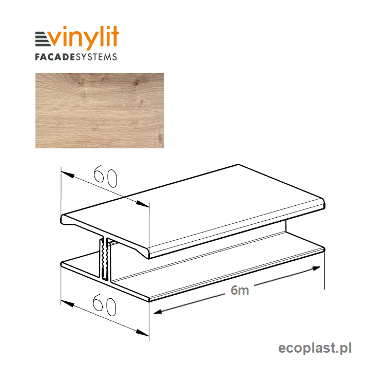 Rozwiązanie dla bezkompromisowych projektów, gdzie liczy się czysta, nieprzerwana linia. Sześciometrowa listwa startowa VINYLIT w kolorze Artisan Oak pozwala na stworzenie idealnie gładkiej podstawy dla wielkoformatowych fasad. To najlepszy sposób, by w pełni oddać zamysł architekta i piękno wzoru drewna na dużej powierzchni.
