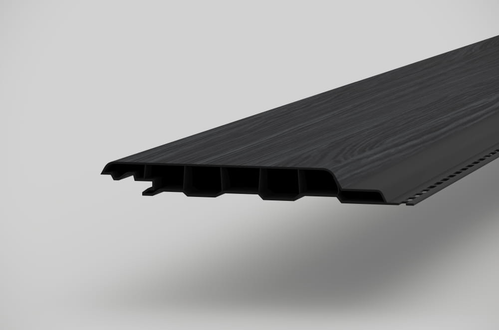 Deski elewacyjne z kolekcji vinyPlus Shadow charakteryzują się szerokim POJEDYNCZYM profilem PŁASKIEJ deski.