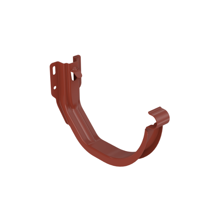 Fundament stalowego systemu rynnowego. Uchwyt rynnowy doczołowy do systemu Bryza Stal 125 mm w kolorze ceglastym to hak o najwyższej wytrzymałości.