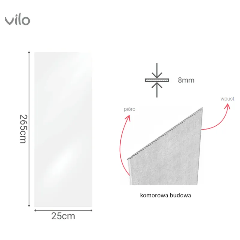 1. Dlaczego warto wybrać panel o szerokości 25 cm? Odpowiedź: Standardowe panele PCV mają zazwyczaj 10 cm szerokości. Panel Vilo o szerokości 25 cm montuje się ponad dwa razy szybciej, co znacznie przyspiesza remont. Dodatkowo, szerszy panel oznacza mniej łączeń na ścianie, co daje efekt gładszej, bardziej jednolitej i nowoczesnej powierzchni.
