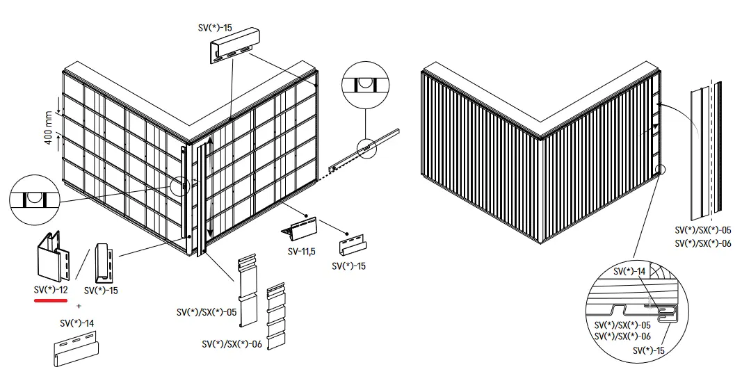 1. Czym różni się narożnik MINI (SVP-12.5) od standardowego (SVP-12)? Odpowiedź: Różnica tkwi w szerokości ramion profilu. Narożnik MINI SVP-12.5 jest węższy i bardziej "zgrabny" niż standardowy, szeroki narożnik SVP-12. Dzięki temu wykończenie elewacji staje się lżejsze optycznie i bardziej dyskretne. Jest to idealne rozwiązanie dla osób, które wolą, aby narożnik nie dominował wizualnie nad panelami.