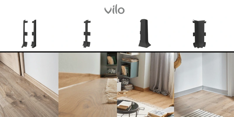 Zwieńcz montaż listew przypodłogowych w profesjonalny sposób. Dedykowana, prawa zaślepka z systemu Vilo LINELA w kolorze Dąb Wellington idealnie maskuje ciętą krawędź listwy, chroni jej rdzeń i nadaje całości spójny, dopracowany wygląd w nowoczesnym stylu.