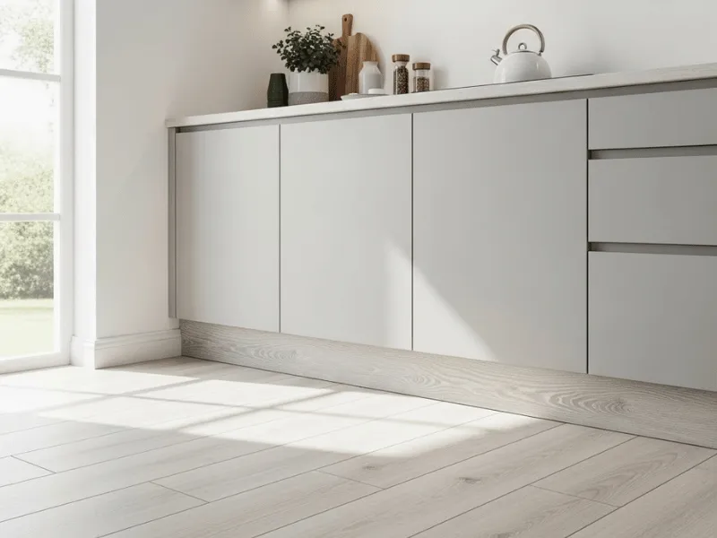 Listwa przypodłogowa Vilo z innowacyjnej linii Esquero Duo w dekorze Dąb Arktyczny (652) to propozycja dla miłośników jasnych, przestronnych wnętrz. Jej subtelny, bielony odcień z delikatnie zarysowanym usłojeniem drewna dębowego idealnie wpisuje się w styl skandynawski, boho oraz minimalistyczny. Doskonale łączy się z jasnymi, pastelowymi ścianami oraz podłogami z jasnego drewna, nadając pomieszczeniu lekkości i optycznie je powiększając.