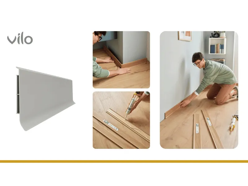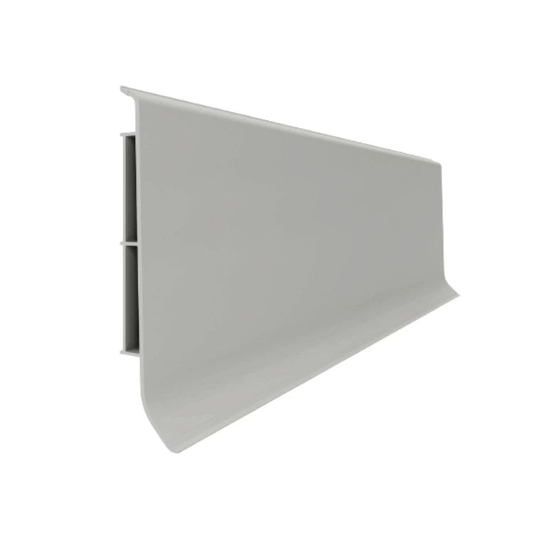 Listwa przypodłogowa Vilo LINELA w kolorze szarym (414) to kwintesencja nowoczesnego designu. Jej idealnie gładka, matowa powierzchnia w neutralnym, średnim odcieniu szarości to doskonałe wykończenie niemal każdej podłogi. Listwa pięknie komponuje się z podłogami winylowymi o wzorze betonu, jasnym i ciemnym drewnem, a także płytkami ceramicznymi, tworząc spójną i elegancką ramę dla wnętrza.