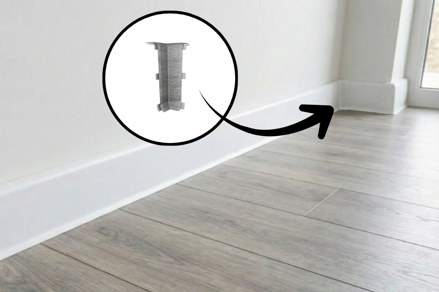 Dedykowany narożnik wewnętrzny do listwy przypodłogowej Vilo ESQUERO 629 Beton Jasny. Umożliwia estetyczne i szczelne połączenie dwóch listew w wklęsłym rogu pomieszczenia, bez konieczności trudnego docinania ich pod kątem.
