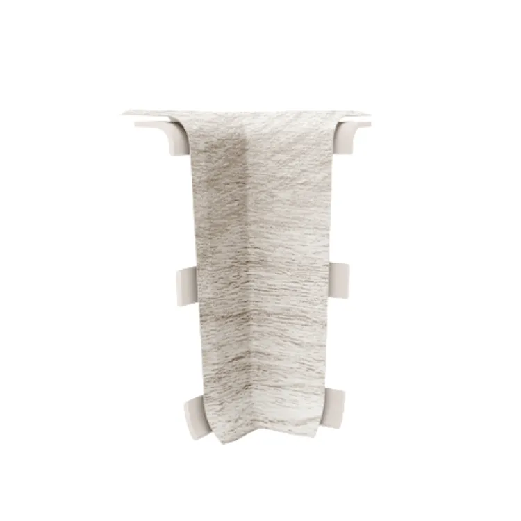 Narożnik wewnętrzny w kolorze Dąb Arktyczny pozwala na precyzyjne i estetyczne połączenie listew w każdym wklęsłym rogu pomieszczenia. Eliminuje trudności związane z docinaniem profili pod skosem i doskonale maskuje drobne nierówności wynikające z braku kątów prostych na ścianach.
