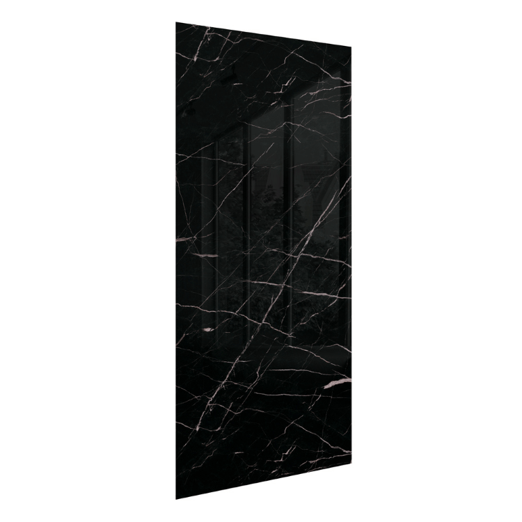 Nowoczesny panel ścienny z kompozytu SPC w dekorze Calacatta Black. Odporny na wilgoć, szybki w montażu, idealny do kuchni i łazienek (poza bezpośrednią strefą natrysku, jeśli producent nie stanowi inaczej).