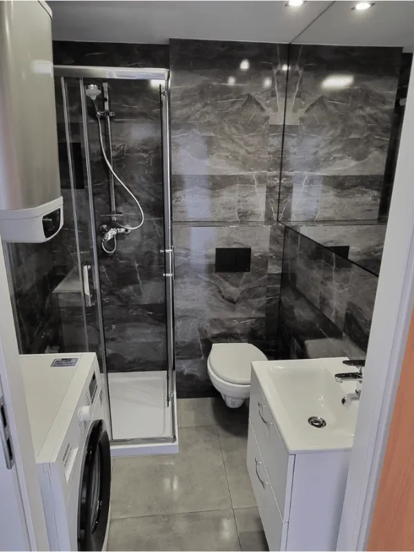 Rewolucja w remoncie łazienki. Wodoodporny panel ścienny kompozytowy (SPC) Vilo w kolorze Dark Stone (Ciemny Kamień) z połyskiem.