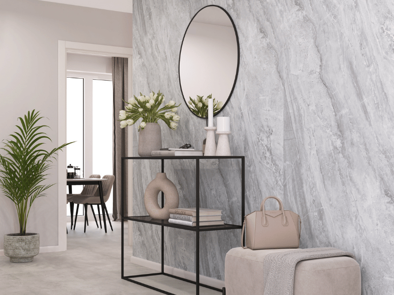Panel Ścienny Vilo SPC Smoky Ash jest w pełni wodoodporny, co czyni go doskonałym do pomieszczeń o podwyższonej wilgotności, takich jak łazienki czy kuchnie. Technologia SPC zapewnia wysoką odporność na uderzenia, zabrudzenia (np. kawa, alkohol etylowy) i odkształcenia, a matowe wykończenie maskuje smugi. To panel ścienny SPC z 5-letnią gwarancją, który zachowa swoją estetykę przez długi czas.