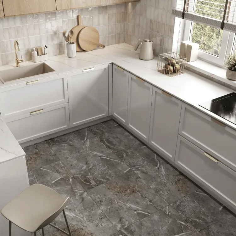 Dekor Marble Skin to unikalna interpretacja kamienia. W przeciwieństwie do surowego betonu czy klasycznego marmuru, wzór ten wyróżnia się subtelnością i organicznym charakterem ("skóra marmuru"). Delikatne przejścia tonalne w odcieniach złamanej bieli i szarości, połączone z matowym wykończeniem, tworzą powierzchnię, która jest elegancka, ale nie onieśmiela. To doskonały wybór do wnętrz w stylu soft minimalism, japandi czy nowoczesnego klasycyzmu, gdzie podłoga ma być tłem dla wyciszenia i relaksu.