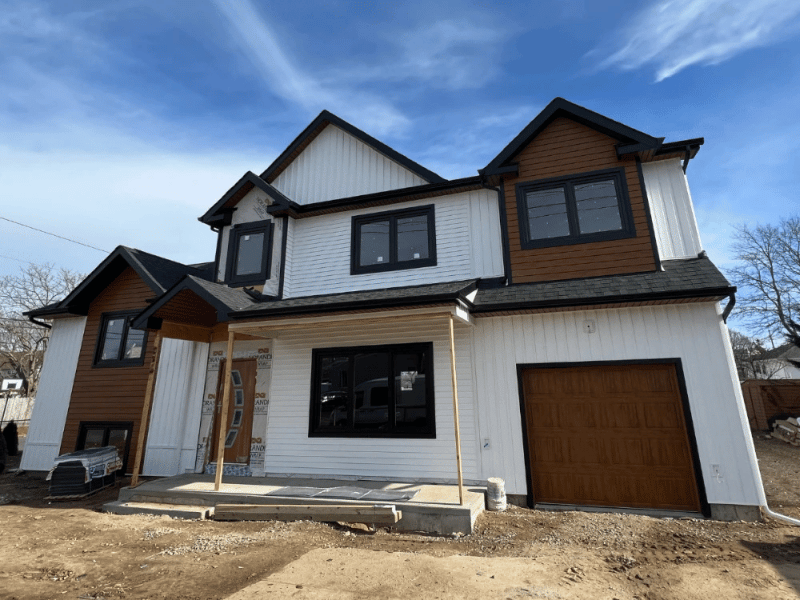 4. Jak czyścić taką elewację? Odpowiedź: To jedna z największych zalet sidingu. Wystarczy woda z węża ogrodowego lub myjka ciśnieniowa (z zachowaniem rozsądnej odległości i ciśnienia). Jeśli pojawią się silniejsze zabrudzenia, można użyć wody z płynem do naczyń i miękkiej szczotki. Nie trzeba niczego skrobać ani szlifować.