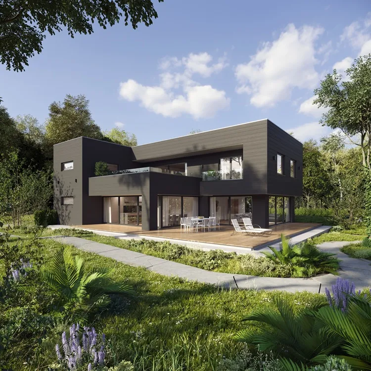 Ciemna elewacja to synonim prestiżu i nowoczesności. Wybierając deski Multipaneel w odcieniu Basalt Grey o długości 6 metrów, nadajesz budynkowi wyjątkowej powagi i klasy. Długi element eliminuje konieczność szatkowania ściany łączeniami, tworząc jednolitą, grafitową taflę. Taki "bezszwowy" monolit sprawia, że bryła domu wydaje się bardziej spójna, solidna i perfekcyjnie wykończona, co jest nieosiągalne przy użyciu standardowych, krótkich paneli.