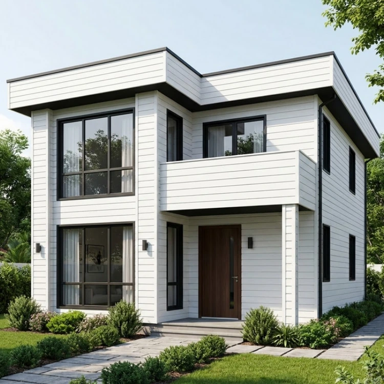 Taka konstrukcja wizualnie przypomina najbardziej prestiżowe realizacje z użyciem blachy na rąbek stojący lub płyt kompozytowych, ale w znacznie trwalszym i łatwiejszym w montażu wydaniu. Śnieżnobiały odcień Signal White w zestawieniu z satynowym wykończeniem o delikatnej strukturze drewna nadaje budynkowi niespotykanej lekkości i luksusowego charakteru.