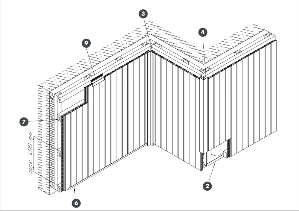 Sekret perfekcyjnego wyglądu narożnika tkwi w jego budowie. System składa się z bazy montażowej przytwierdzanej do ściany oraz profilu maskującego w kolorze Creme. Po ułożeniu paneli elewacyjnych, profil maskujący jest wciskany na bazę, co sprawia, że krawędzie cięcia desek oraz wszelkie wkręty stają się niewidoczne. Gwarantuje to nie tylko estetykę, ale i wysoką szczelność połączenia na całej długości 6 metrów.