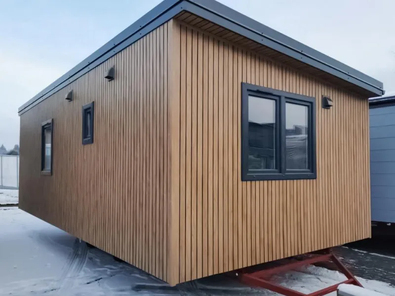 Kolor "Artisan Oak" to hołd dla naturalnego rzemiosła. Jest to ciepły, nasycony odcień dębu z wyraźnym, realistycznym usłojeniem. Dzięki zastosowaniu wysokogatunkowej okleiny, panel nie tylko wygląda jak drewno, ale jest też przyjemny w dotyku. To idealne rozwiązanie, aby ocieplić wizualnie nowoczesne budynki o prostej bryle, łącząc je z naturą bez wad naturalnego surowca.