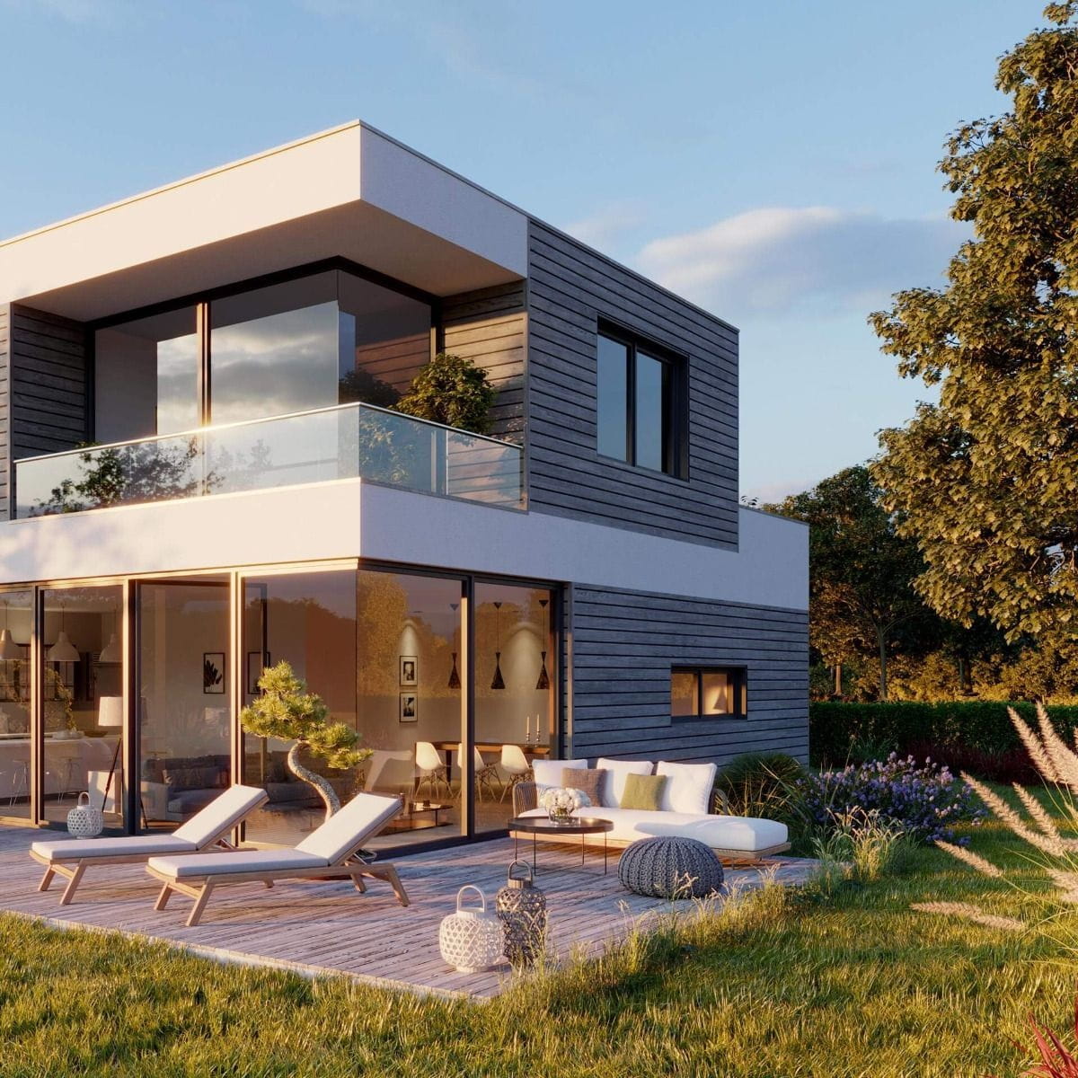 Deski elewacyjne z kolekcji vinyPlus Shadow charakteryzują się szerokim POJEDYNCZYM profilem PŁASKIEJ deski.