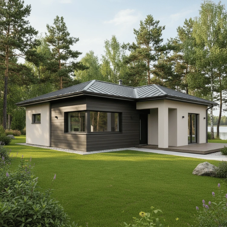 Ciemne fasady, takie jak Kitami Oak, to silny trend w nowoczesnej architekturze. Idealnie pasują do budynków o prostej, geometrycznej bryle, gdzie tworzą elegancki kontrast z dużymi oknami, jasnymi detalami lub naturalnym otoczeniem.