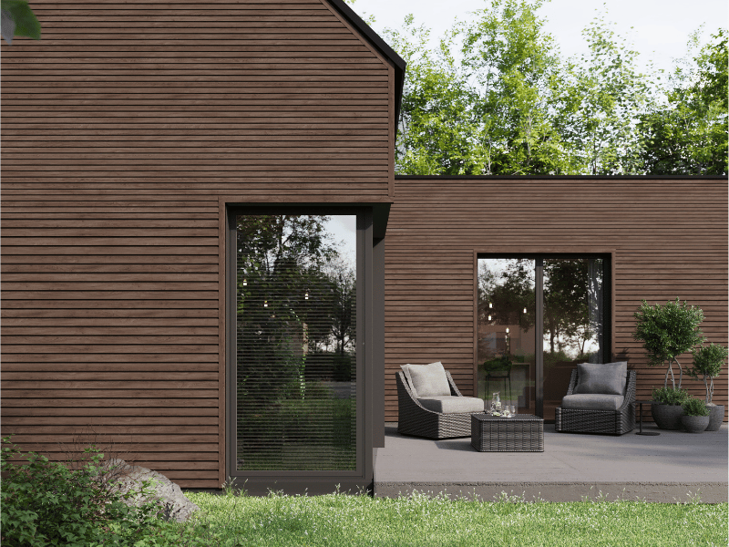 Panele Solvo Dąb Czekoladowy to wszechstronne rozwiązanie, które sprawdzi się zarówno w projektach nowoczesnych, jak i klasycznych. Idealne do wykończenia fasad domów jednorodzinnych, budynków komercyjnych oraz mniejszych konstrukcji, takich jak domki letniskowe, altany czy garaże.