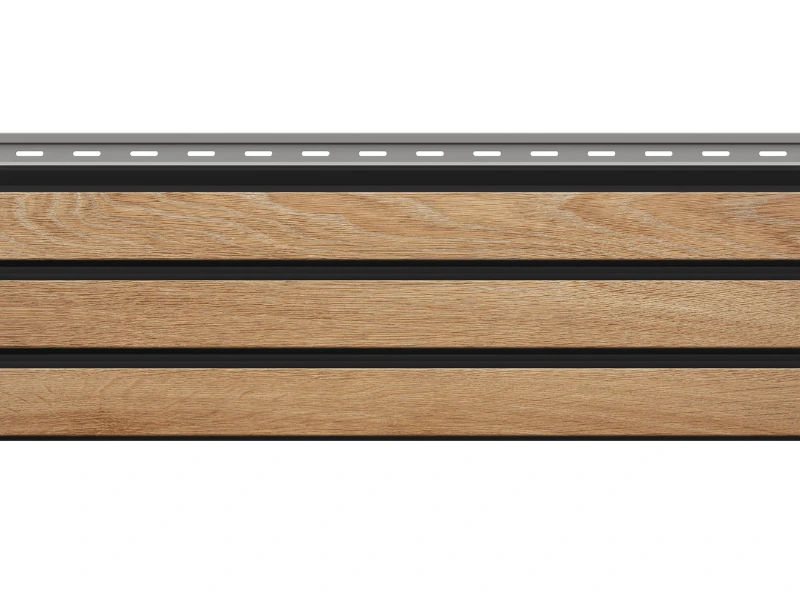 ✔ Trwałość – odporny na wilgoć, warunki atmosferyczne i uszkodzenia (udarność powyżej 10 J).✔ Estetyka – kolor Dąb Naturalny V-Black z czarnymi fugami nadaje elewacji trójwymiarowy efekt.✔ Łatwy montaż – lekka konstrukcja i system CLICK z otworami montażowymi.✔ Wszechstronność – możliwość układania w pionie i poziomie dla różnych efektów wizualnych.✔ Ekologiczność – w 100% nadaje się do recyklingu, bez szkodliwych substancji