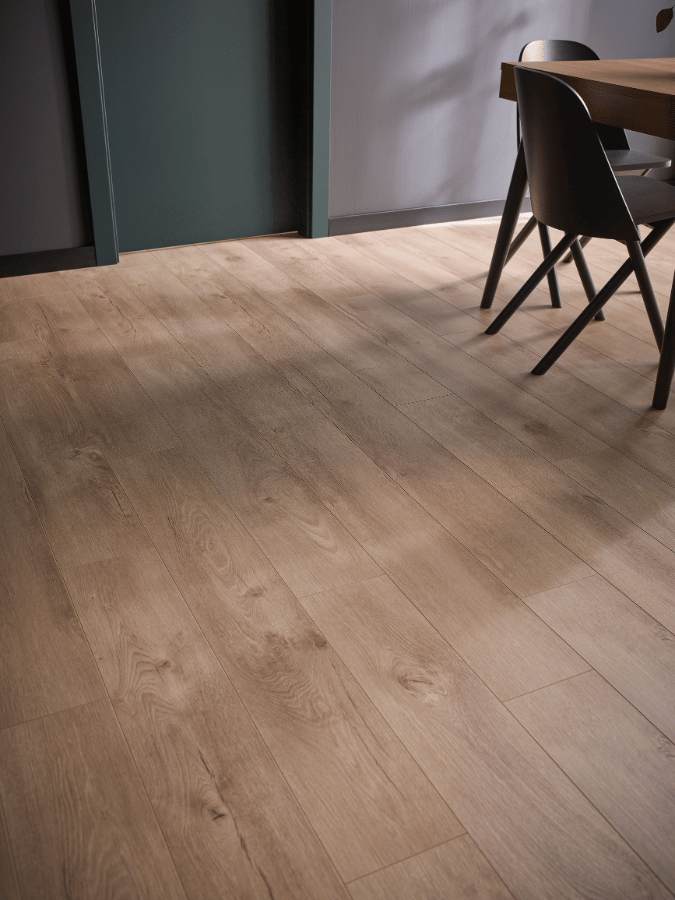 Panel Dąb Sargas o klasie ścieralności AC4, dzięki najbardziej doskonałemu zamkowi i dodatkowym zabezpieczeniom w postaci warstwy hydrofobowej umożliwia montaż paneli w pomieszczeniach o zwiększonej wilgotności.