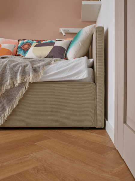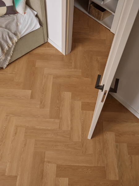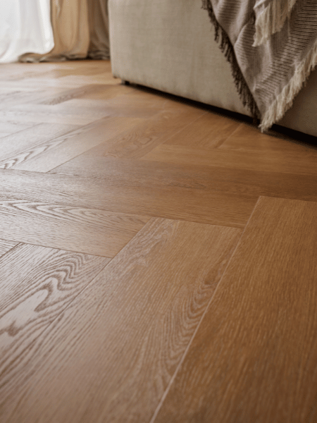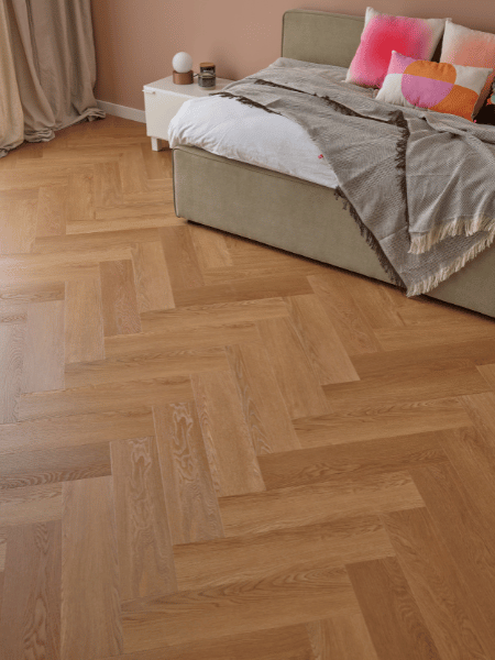 Wzór Oak Montana wprowadza do wnętrza ciepły, naturalny wygląd drewna, co sprawia, że podłoga jest doskonałym uzupełnieniem zarówno klasycznych, jak i nowoczesnych aranżacji. Jodełka dodaje wnętrzom elegancji i luksusowego charakteru, a realistyczne odwzorowanie słojów drewna potęguje efekt naturalności.