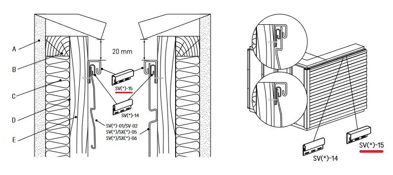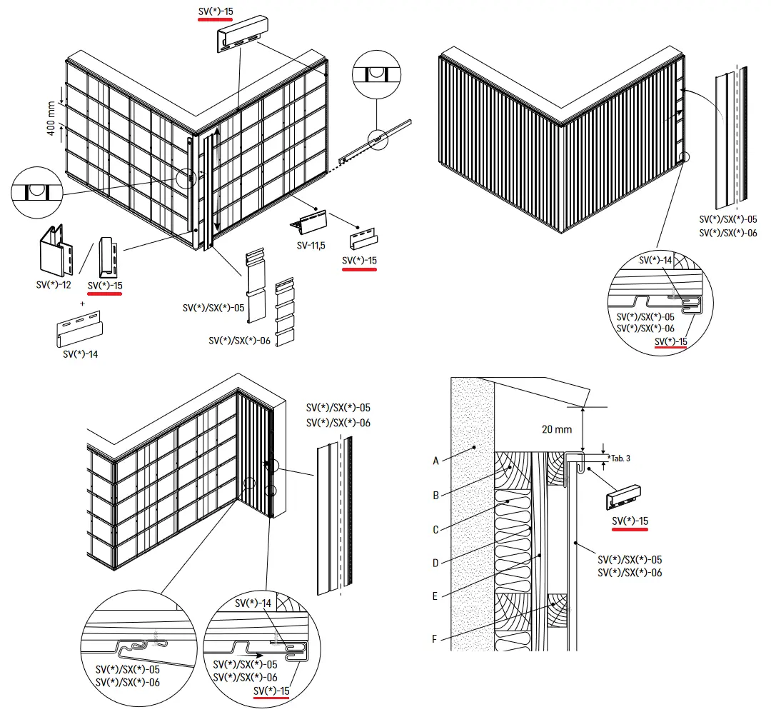 Zastosowanie listwy J SVP-15 przy montażu paneli sidingowych i lamelowych w pionie: